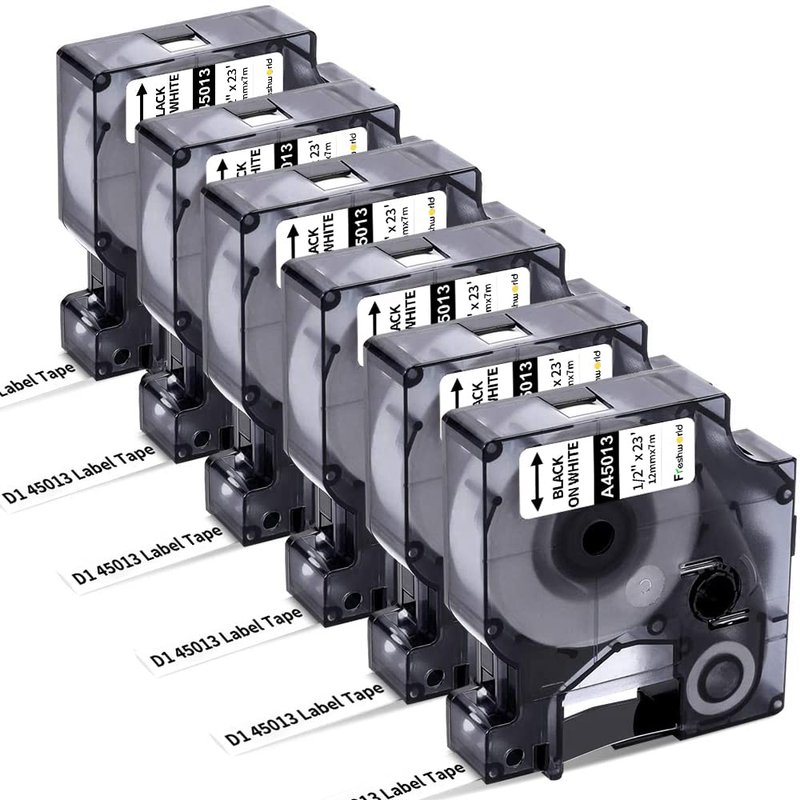 - Package Included: 6 Pack Compatible Dymo 45013 S0720530 Dymo Label Maker Refills d1 Dymo D1 Labels Tape.Color: Black Text Print on White Background.Size:Width: 1/2 inch (12mm) each. Length: 23 feet (7m) each.