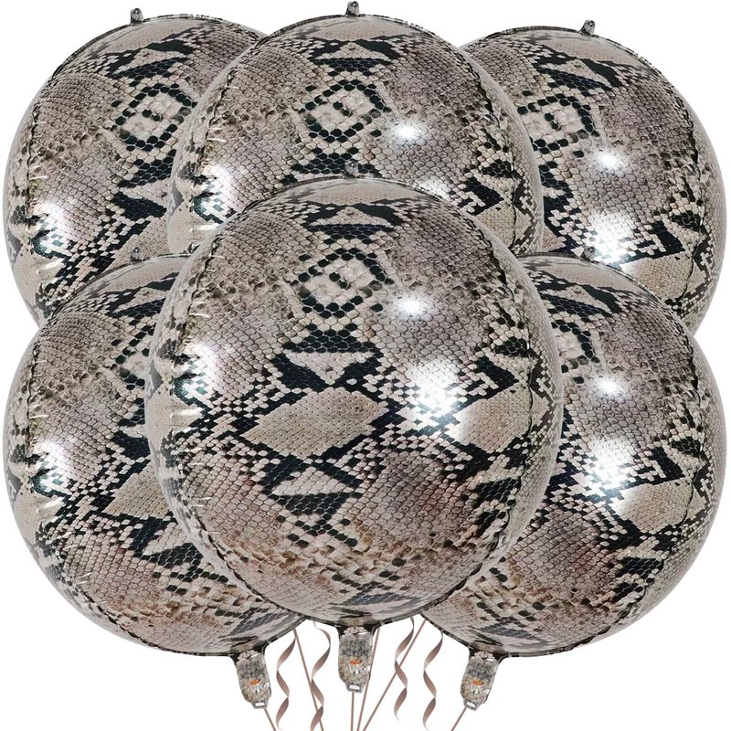 6 Pack Giant 22 Inch 4D Animal Snake Pattern Sphere Foil Balloons Helium Jungle Safari Serpent Animals Metallic Balloons Wildlife Print Balloons for Animal Birthday Theme Backdrop Kids Party