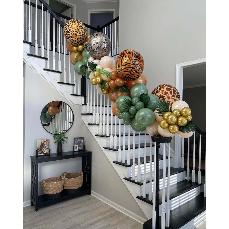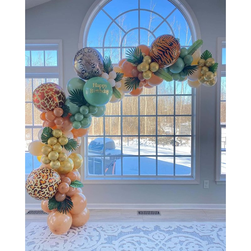 - Large Size Foil Animal Print Balloons: 6 Pcs 22 inch 4D Round Foil Balloons (uninflated) + 1pcs Straw +1pcs 32 foot Ribbon Roll,Multiple animal prints are available: tigher print,zebra print,python print,leopard print,giraffe print to choose from,there must be one can match your Jungle safari party theme.