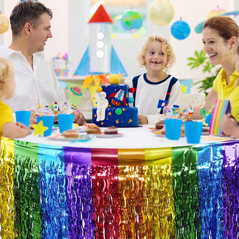 - Durable Quality: Crafted from high-quality plastic metallic foil, our rainbow table skirt is designed to last. With its strong self-adhesive, it is easy to apply and will stay securely in place throughout your celebration, lighting up your party and leaving a lasting impression on your guests.