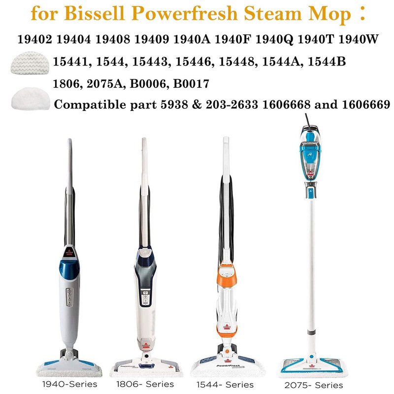 - 🌱Adaptable Models -- Steam mop pads fit for Bissell Powerfresh Steam Mop 1940 1440 1544 1806 2075 2685A 2814 series such as 19402 19404 19408 19409 1940A 1940F 1940Q 1940T 1940W 15441 1544 15443 15446 15448 1544A 1544B 1806 2075A B0006 B0017 2685A 2814. Compare to Part #: 5938 & 203-2633,1606668 and 1606669.