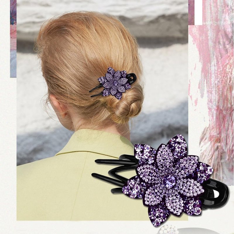 - - MORE CHOICES - There are 3 different shapes of butterflies and flowers, 6 different gradual color rhinestone double hair clips, so you have different choices every day