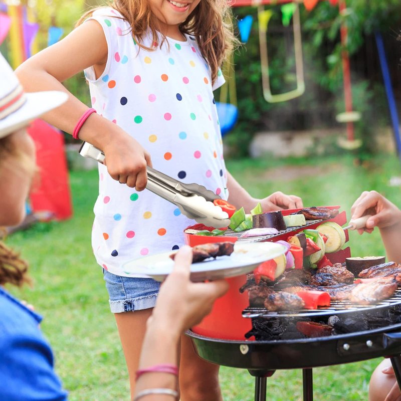 - How to use - The serving tongs are applicable for flipping burgers or fish, grilling meat or as salad tongs.Stainless Steel Metal Serving tongs work well on buffet, catering, wedding, home, party, restaurant, hotel, celebration.Ideal for serving salads, fruit, soups, dessert, steak, noodles, cake, cheese, vegetables,appetizer.