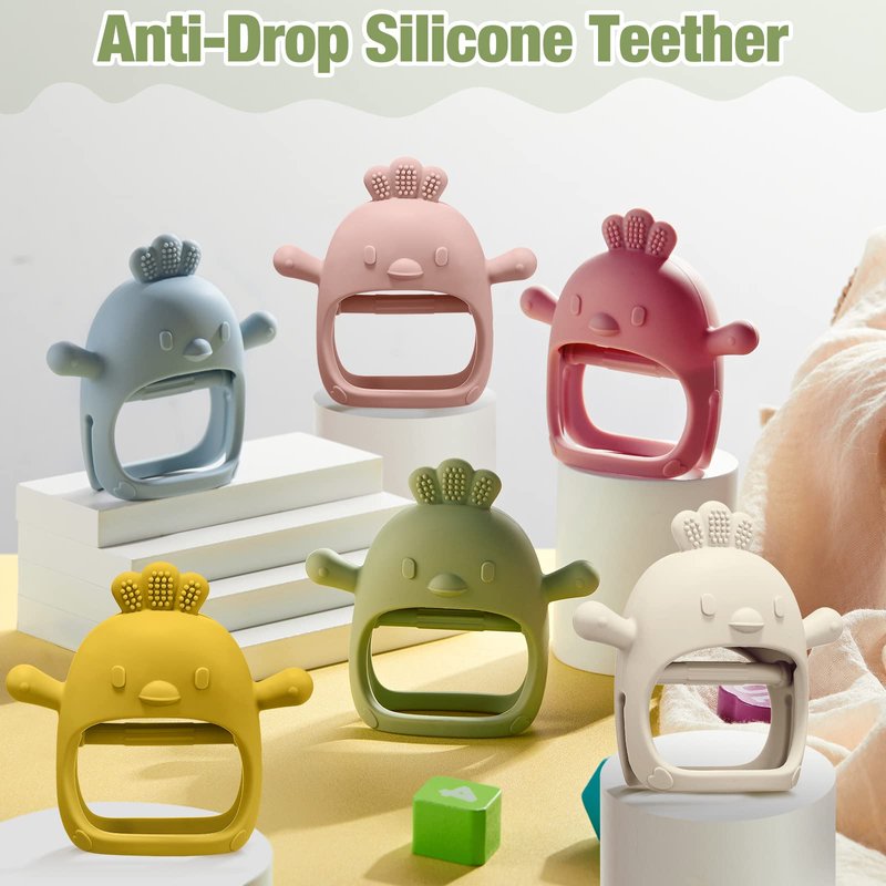 Features: The infant teether is designed in a cute chick shape, and the pastel color makes it easier to draw babies' attention, adorable and exquisite. Also, the silicone teether can be regarded as a practical gift for your babies and people who have babies, such as relatives, neighbors, classmates and colleagues, an ideal accessory to help them soothe their kids. Specifications: Material: silicone Color: beige, blue, dark pink, olive, mango color and light pink Quantity: 6 Package includes: 6 x Hand teethers for babies Notes: Manual measurement, please allow slight errors on size. The color may exist a slight difference due to different screen displays.