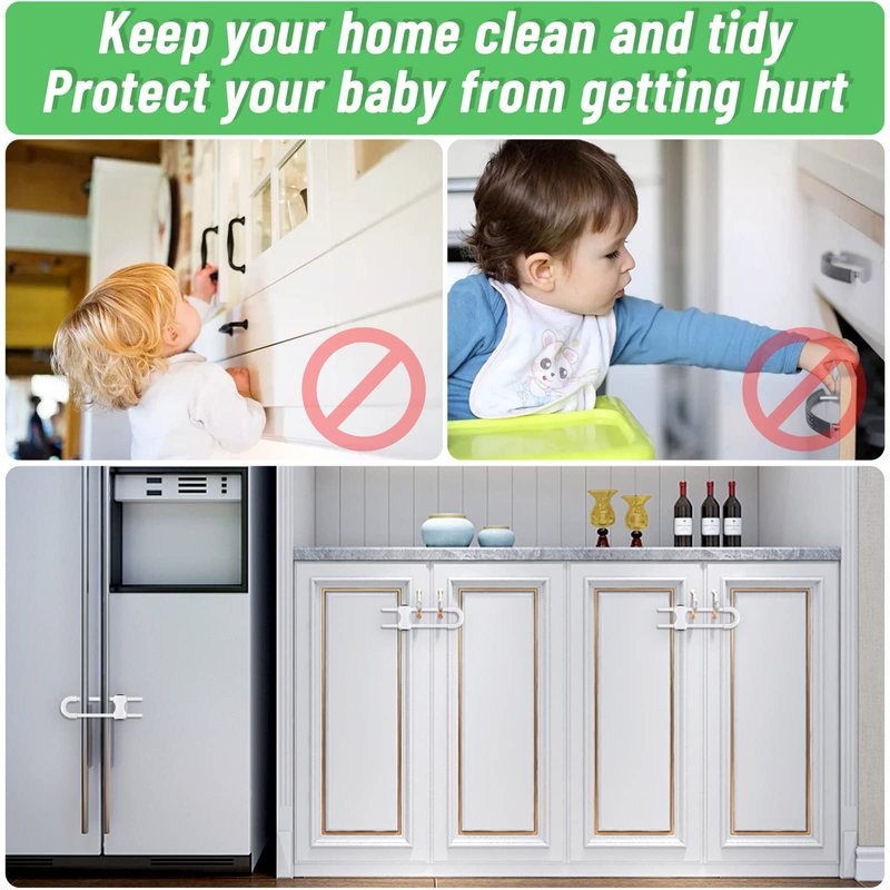 - 🔒【Durable Material】The baby cabinet safety latches are made of quality ABS material, which is durable and lasts for a long time. They can prevent children or pets from messing up your cabinets or any other drawers.