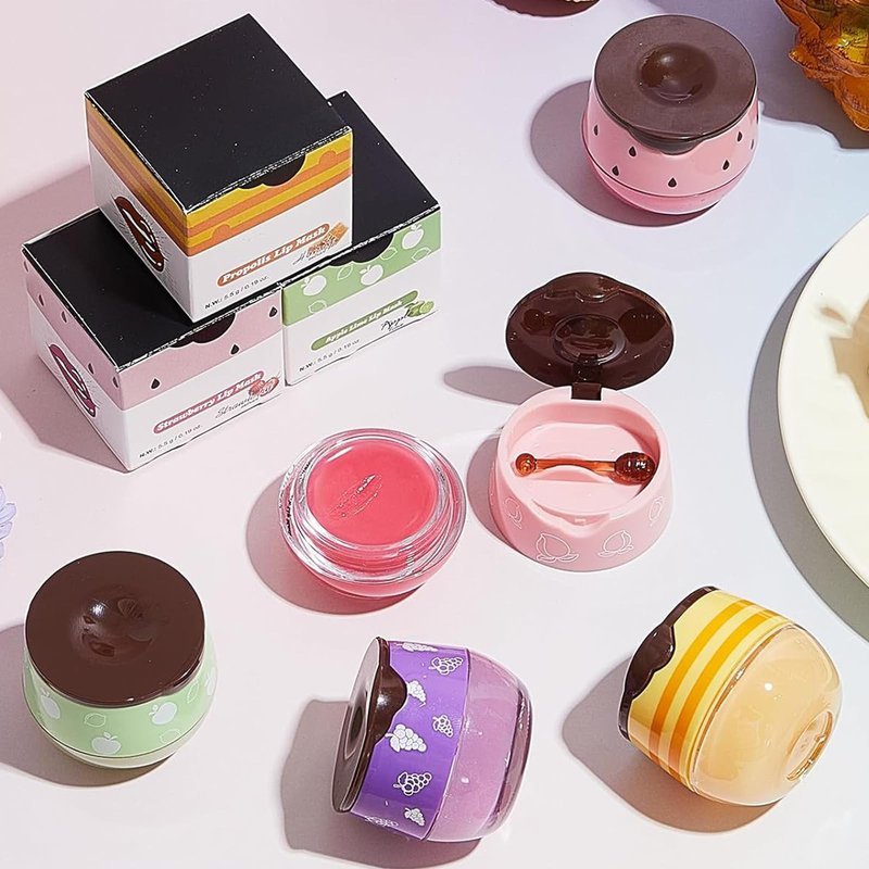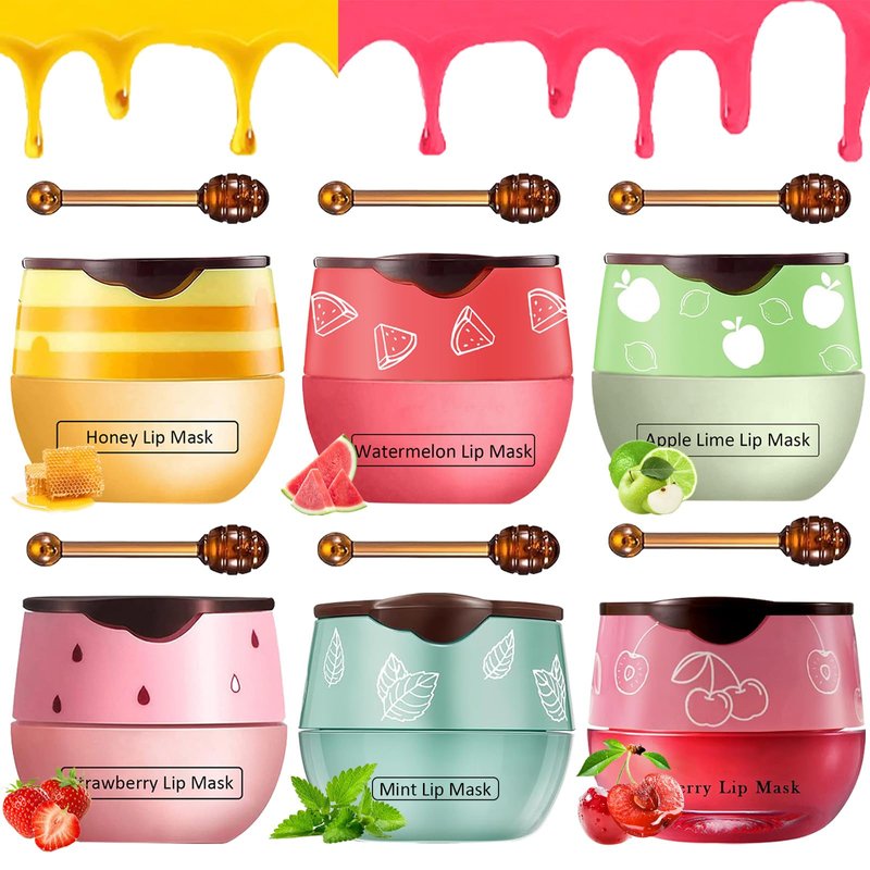 6 PCS Bee Lip Balm Honey Pot,Lip Mask Overnight Hydrating Prevention Dry and Cracked Lip Scrubs Exfoliator Lip Care, Reduces Lip Lines