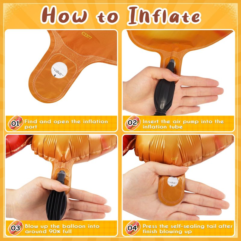 - Easy to Use: Just use a straw or air pump to inflate the balloon. After filling, flatten the expansion port and automatically seal it without air leakage. It is easy to use and is a good choice for party decoration.Please do not fill with helium, hot dog balloons do not support floating!