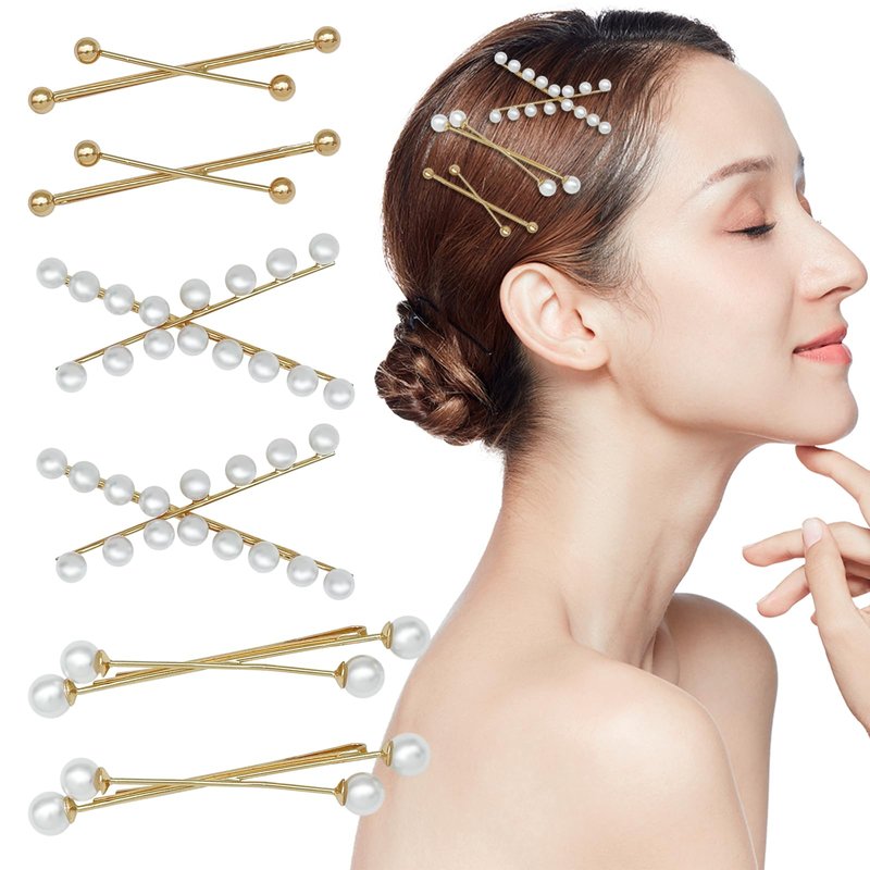 6 Pcs Gold Hair Bobby Pins Pearl Hair Clips X Shaped Hair Barrettes Metal Hair Pin Decorative Wedding Bobby Pins Small Cute Hair Styling Accessories for Women Girls
