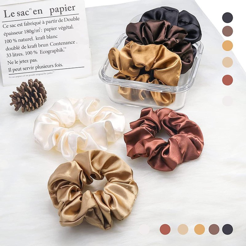 6 Pcs Hair Scrunchies for Women Solid Color Hair Ties Bands Satin Elasticity Hair Scrunchies for Women's Thick Curly Hair Ponytail Holder Silk Satin Scrunchy Hair Accessories Trendy Stuff