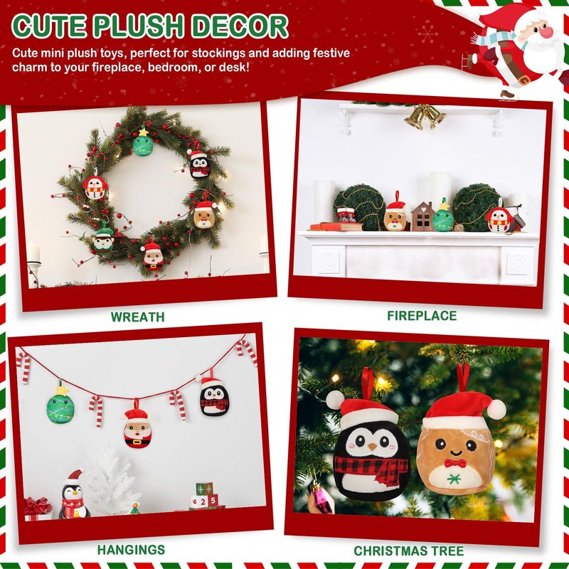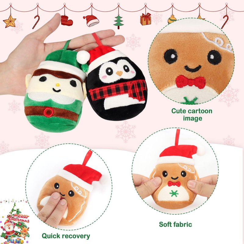 6 Pcs Mini Plush Christmas Ornaments 3.15’’ Cute Plush Ornament for Christmas Tree Decoration, Collectible Soft & Squishy Small Stuffed Animal Toy - Stocking Stuffers, Gift for Kids