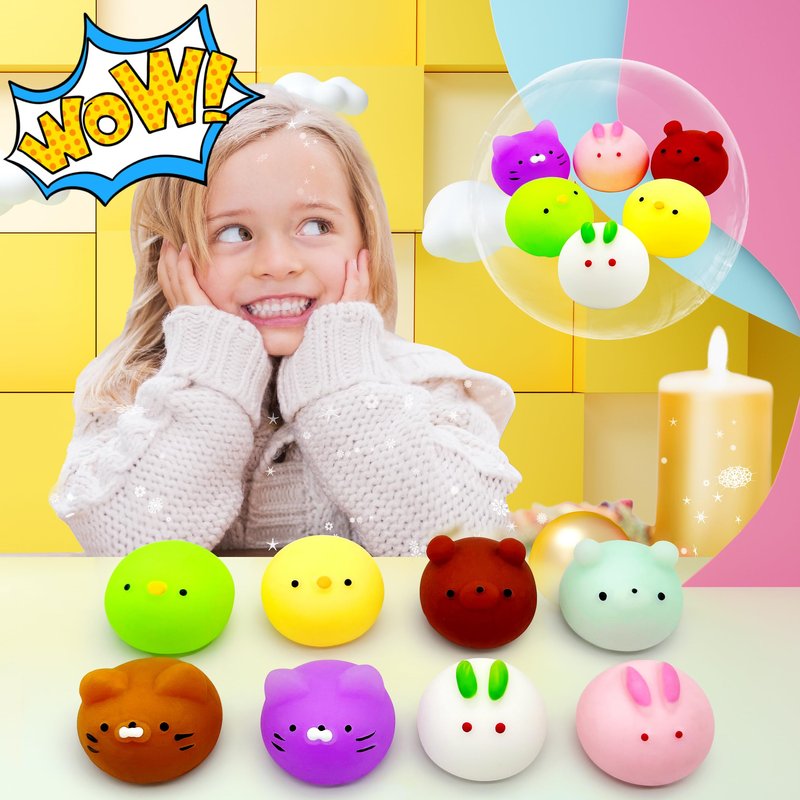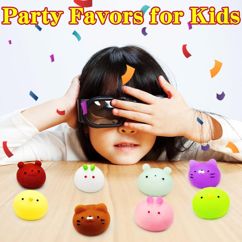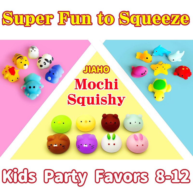 - Soft and Cute Party Favors for Kids: Animal squishy toys are great fidget toys, With their adorable designs and soft-to-the-touch feel, these mochi squishy toys make for excellent Christmas or birthday gifts, goodie bag and Easter basket stuffers, or classroom prizes. Suitable for children and toddlers over 8 years old.
