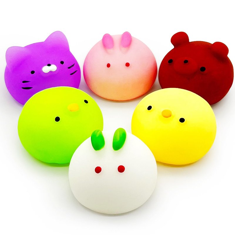 - 6 Pack Round Animal Squishy Toys: Receive a random package of 6 mochi squishy toys, squishy toys set contains bears, rabbits, chickens, cats four kinds of animals, and each animal has a variety of colors. A variety of animals making them perfect for kids party favors!