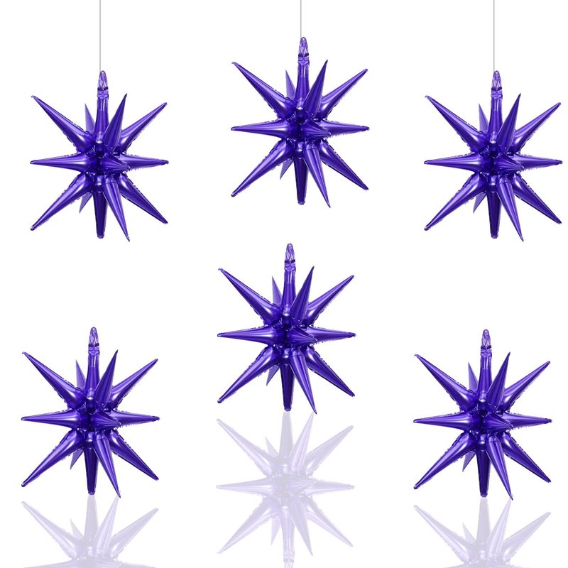 6 Pcs Purple Star Foil Balloons One-Piece 14-Pointed Star Balloons 4D Starburst Cone Mylar Balloons 22inch Christmas Birthday Wedding Wedding Anniversary Party Supplies(Purple)