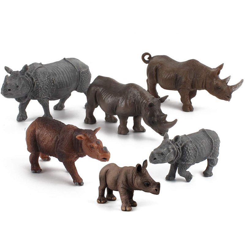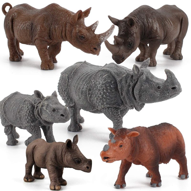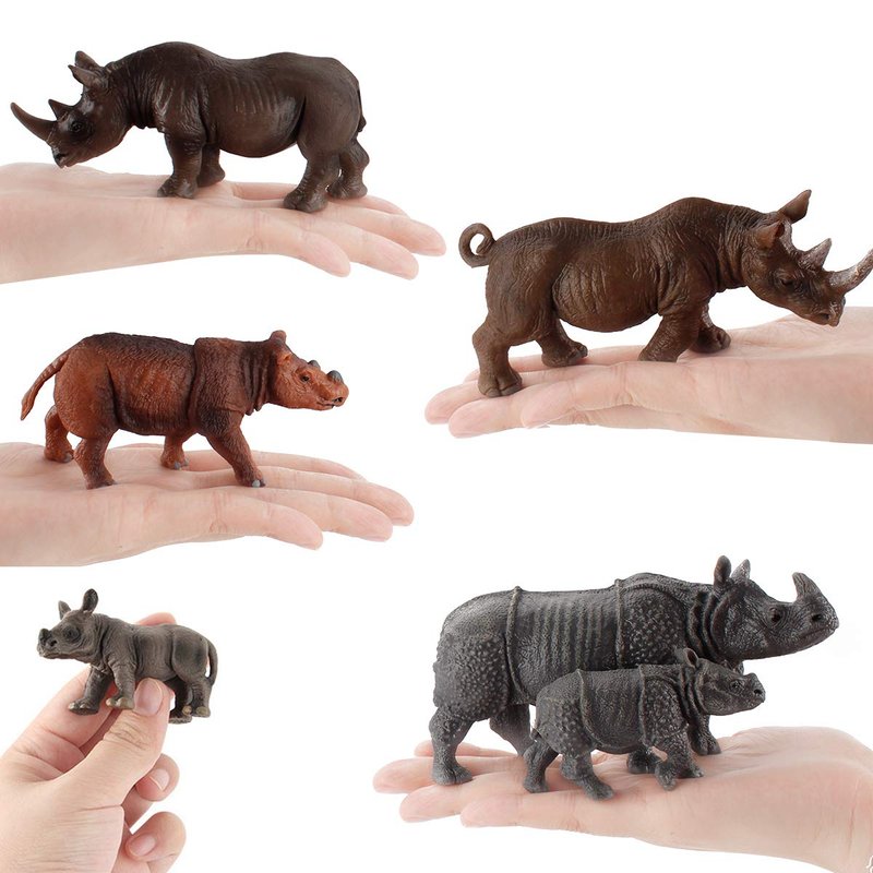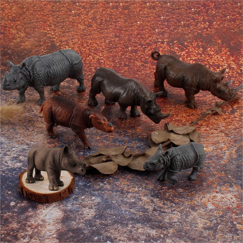 6 PCS Rhinoceros Wild Animal Model Figures Dicerorhinus Sumatrensis Figurines Family Party Favors Supplies Cake Toppers Decoration Set Toys for 5 6 7 8 Years Old Boys Girls Kid Toddlers