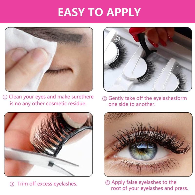 - 【Reusable and Lightweight】Self-adhesive eyelashes can be used over and over again. It won't agglomerate or set in hot or cold weather to be stored conveniently. At the same time, the self-adhesive lashes are so light that you feel comfortable to put on.