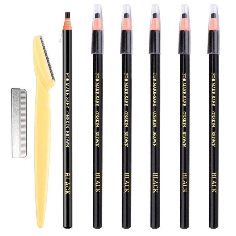 - 1.【Super value packing】6 Piece Black Colour pencil ,1 sharpeners。Fast makeup and Easy to use:Do not waste time to sharpen brow pencils anymore. Just need to pull the string on their side and peel the excess off, and then use a small sharpening blade and carve the tips of the pencial.