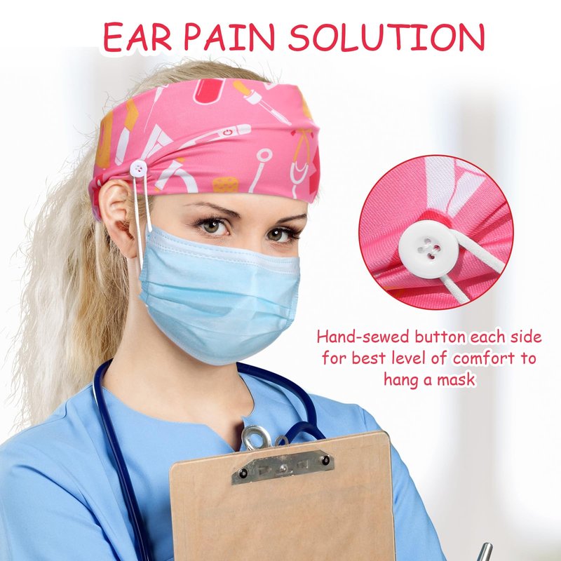 - Soft and breathable material: the nurse headbands with buttons are all made of quality fabric; The soft and elastic stretch will not cause you any discomfort when wearing them; The headband is also skin-friendly, sweat-absorbing, comfortable to wear, cool, and not stuffy