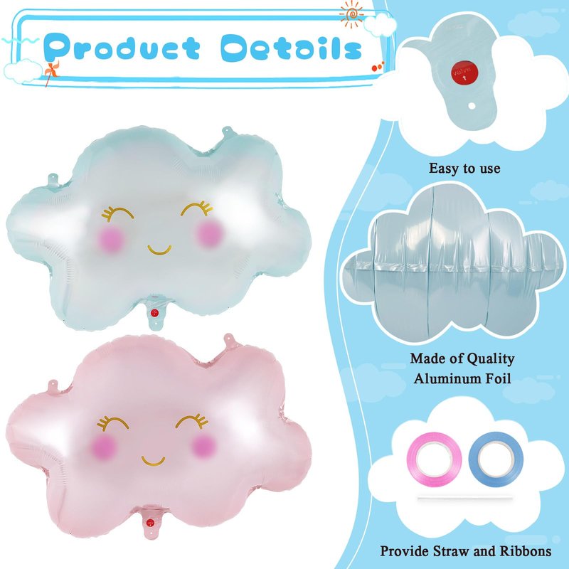• High quality material: These cloud balloon decorations are made of aluminum foil, exquisitely printed, safe and environmentally friendly, resistant to breakage and fading, lightweight, easy to hang and carry, self sealing design, reusable, and easy to store for a long time
