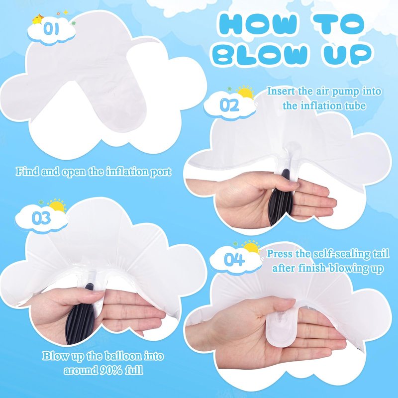 • Easy to use: Simply use a straw or air pump to inflate the white cloud balloon. After filling, flatten the expansion port, automatically seal without air leakage, making it a good choice for party decoration.