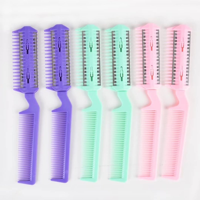 - Package includes: 6 pieces razor comb,random color,Plastic Comb with 2pcs Shielded stainless steel blade, make it can be applied for longer time;Dual side cutting scissors, double edge razor blades