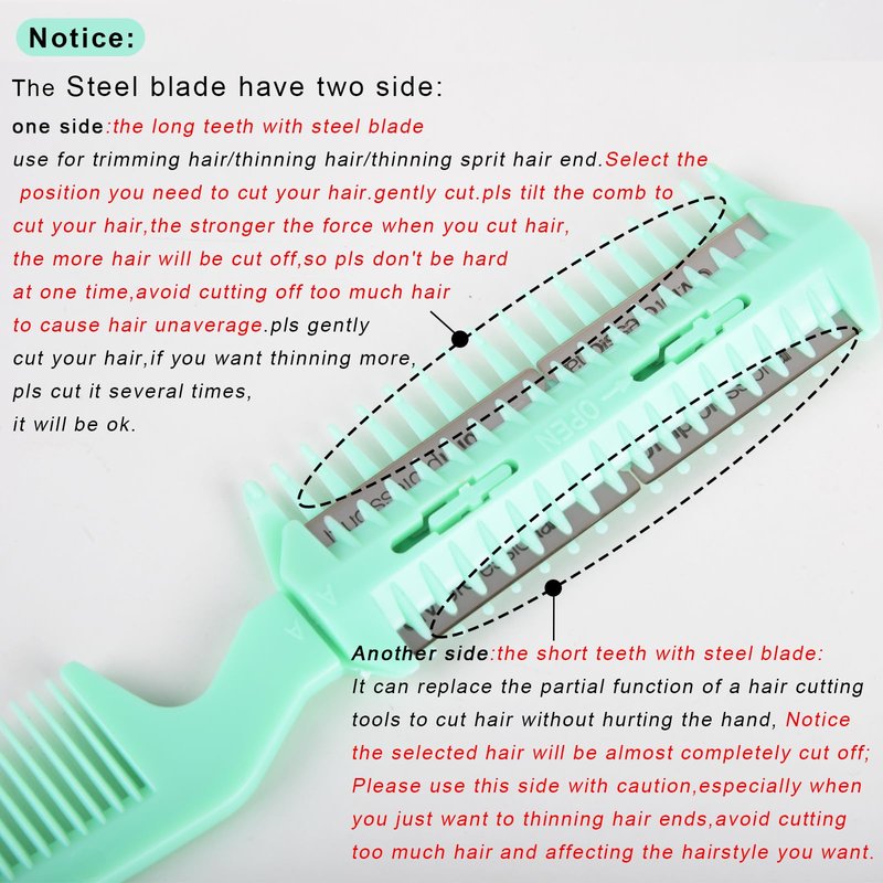 - Easy to use: the hair thinning comb blades can be replaced, both sides can cut off hair, one side teeth, one side sparse; Smart diy tool at home, convenient to use and portable to carry