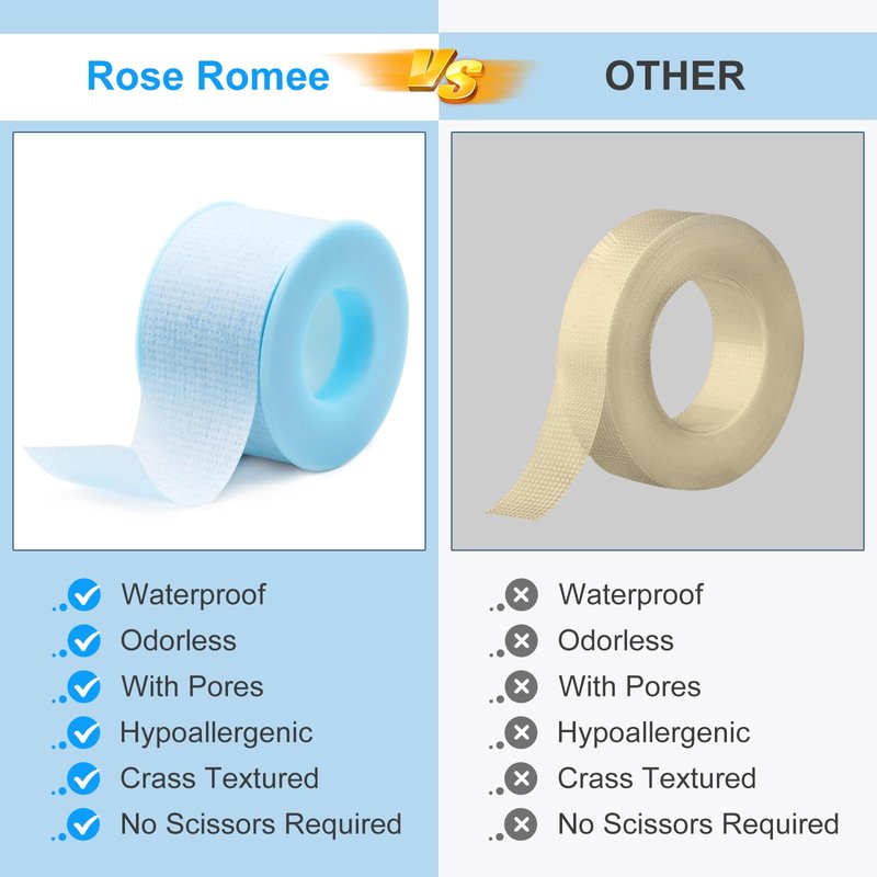 Rose Romee eyelash tape for lash extensions offers excellent adhesion while remaining gentle on the eye area, making it easy to remove without causing pain.