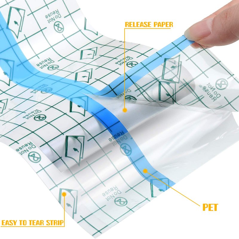 - Layers humanized feature: transparent film dressing bandages have 3 layers that are composed of PET backing, adhesive and release paper, so they can firmly and easily stick to your skin, with strong air permeability to make your skin feel more comfortable