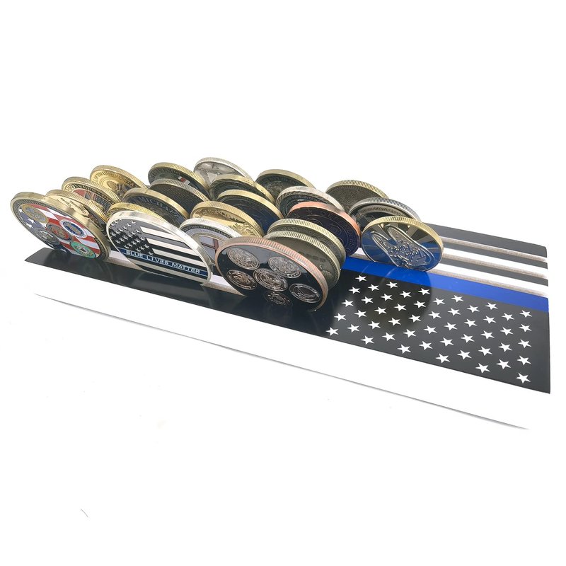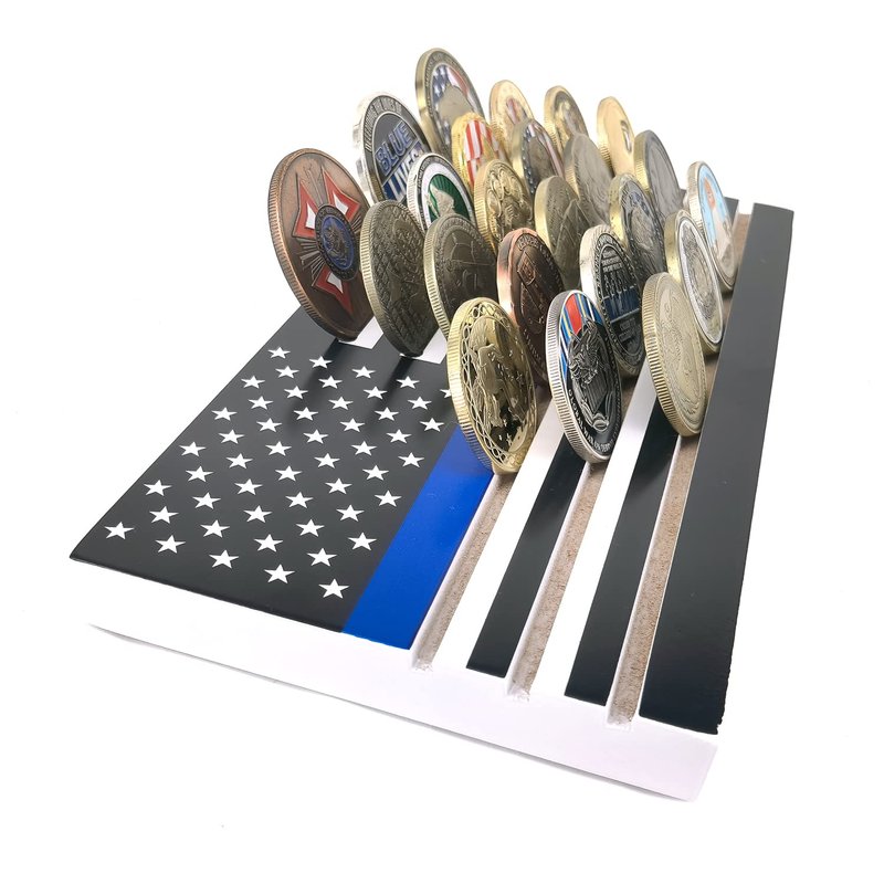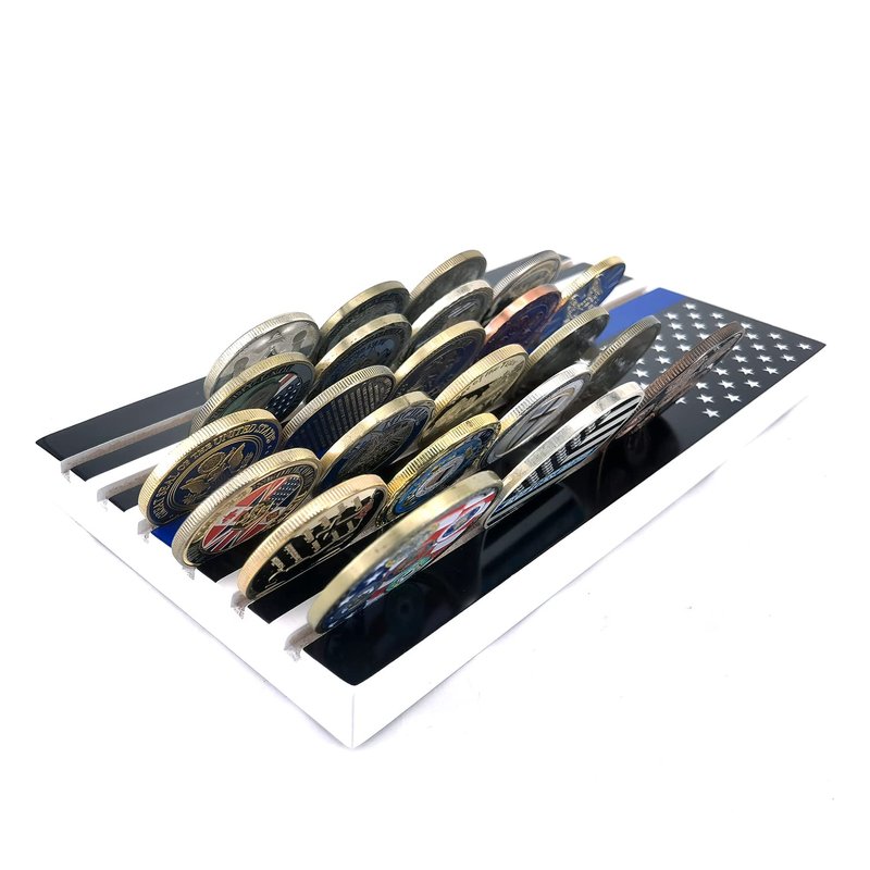 6 Rows American Flag Coin Holder - Thin Blue Line Military Challenge Coin Display Stand - Coin Display Case