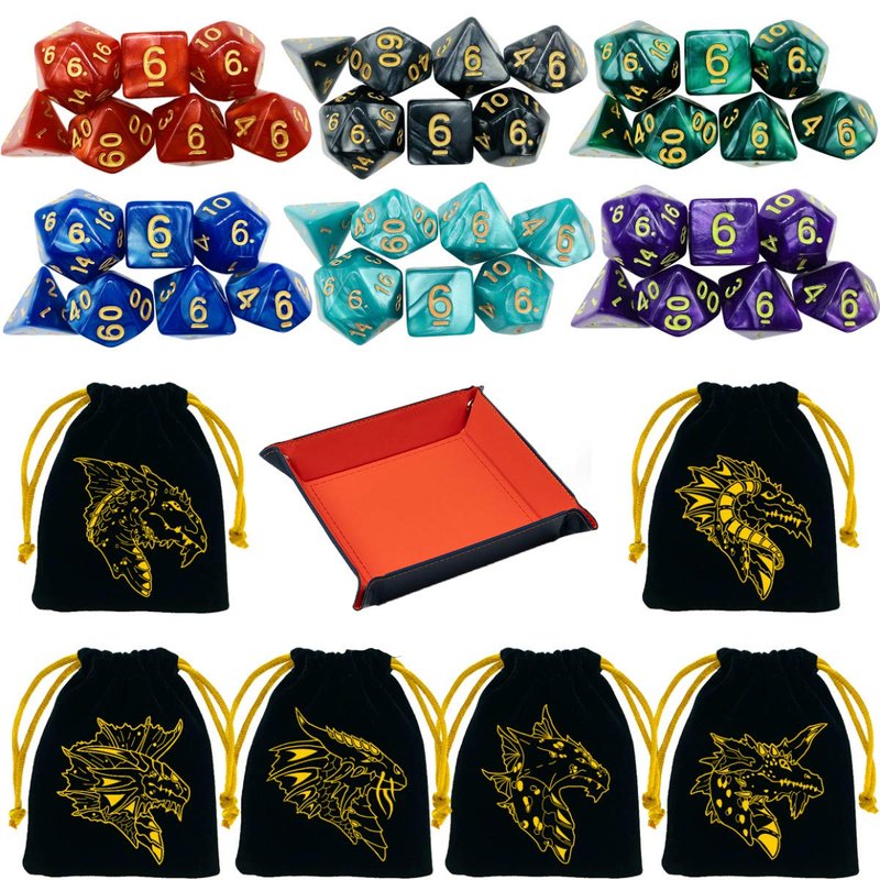 - PACKAGE: Come with 6 * Dice Set, 6 * Drawstring Bag, 1 * Dice Tray and 1 * Paper Sticker
