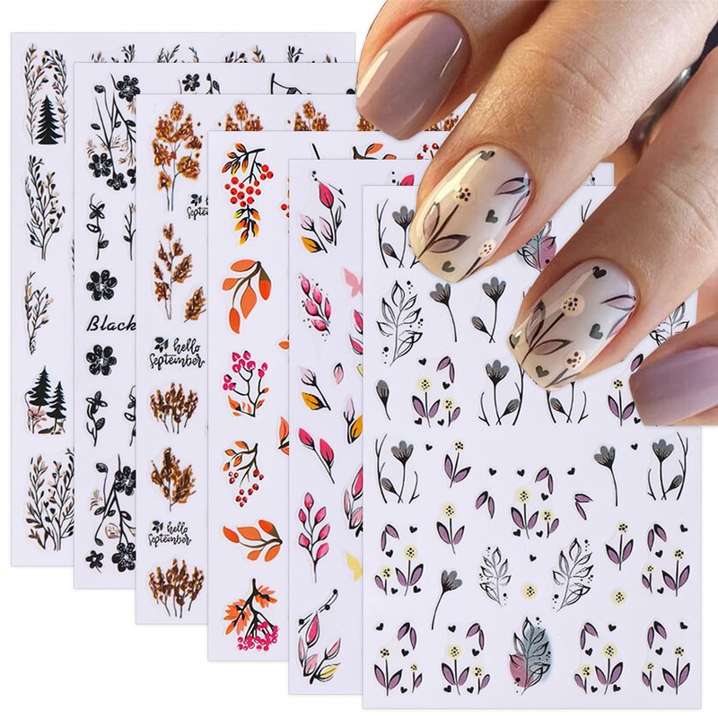 Item Type: Fall Self-Adhesive Nail Stickers Decals Package Content: 6 Sheets Nail Stickers Color: As the picture shows Pattern: As the picture shows