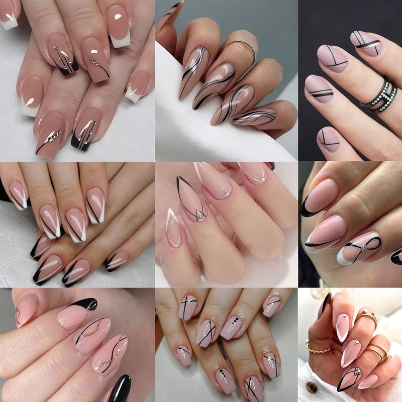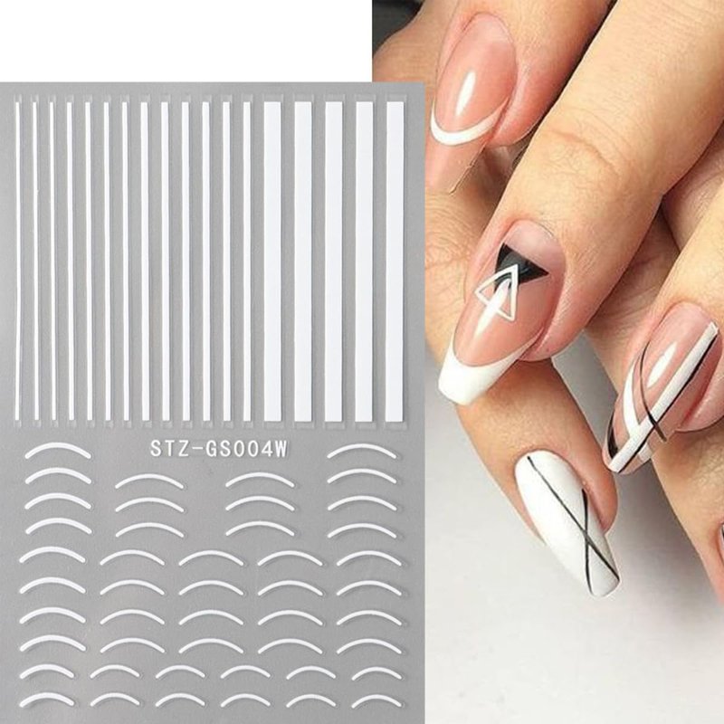 - French Tip Nail Decor: You will receive 6 sheets black white line nail art stickers. Exquisite nail design, perfect for women girls, you can choose different patterns to decorate your nails.