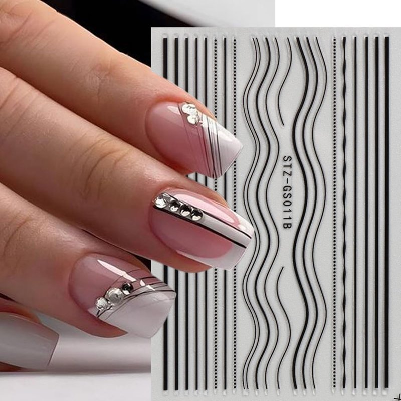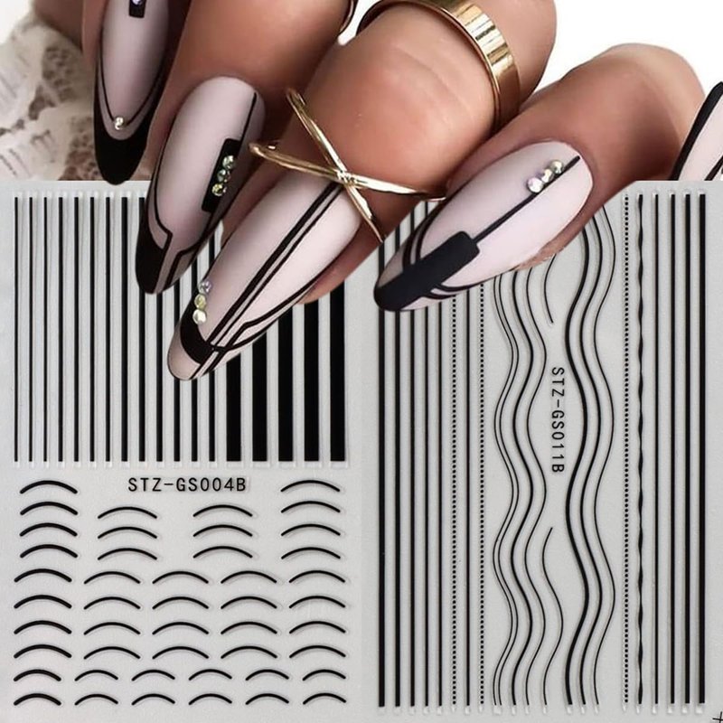 - Easy to Use: The 3D self adhesive line design nail stickers, just peel it from the paper and stick it on you nails. Easy to use, Ideal for natural or acrylic nails. Is the best nail decoration.