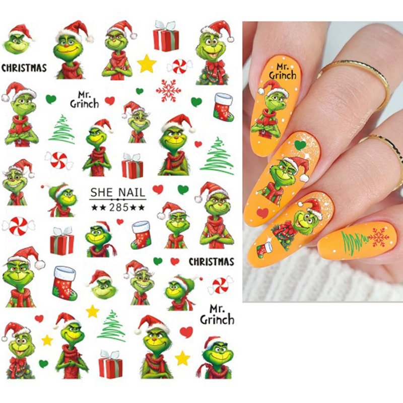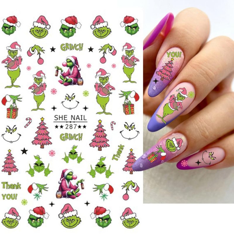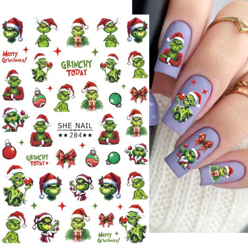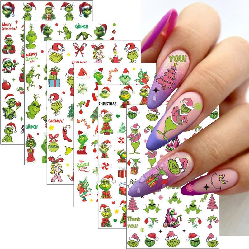 - 【What You Will Get】:6 sheets delicate Christmas cute cartoon green nail art stickers, 6 sheets with different styles, the stickers are rich in patterns and styles, and can be used for nail decoration decals.