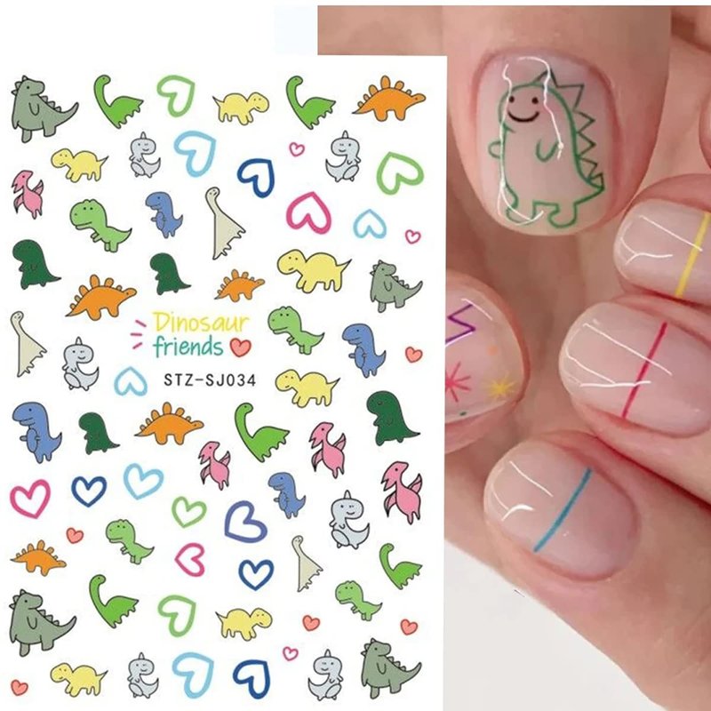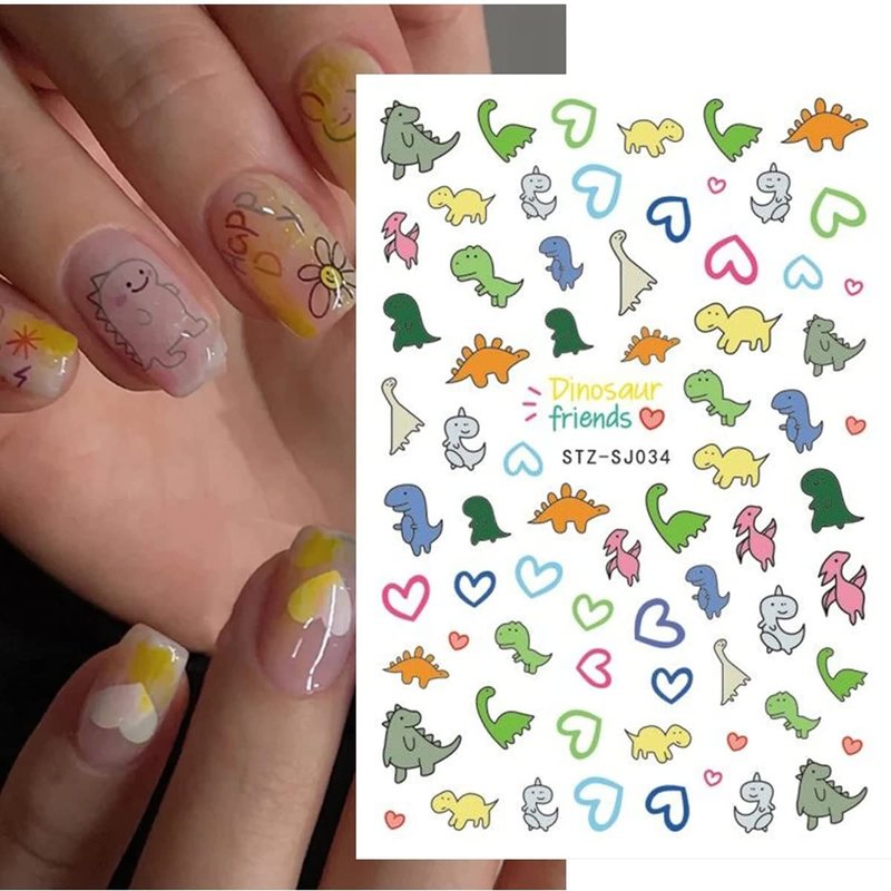 - Kawaii Nail Stickers for Girls: 6 sheets / set cartoon nail sticke set, These kawaii stickers have cute dinosaurs, hearts,cartoon graffiti pattern designs, which are irresistible nail art accessories for small girls.