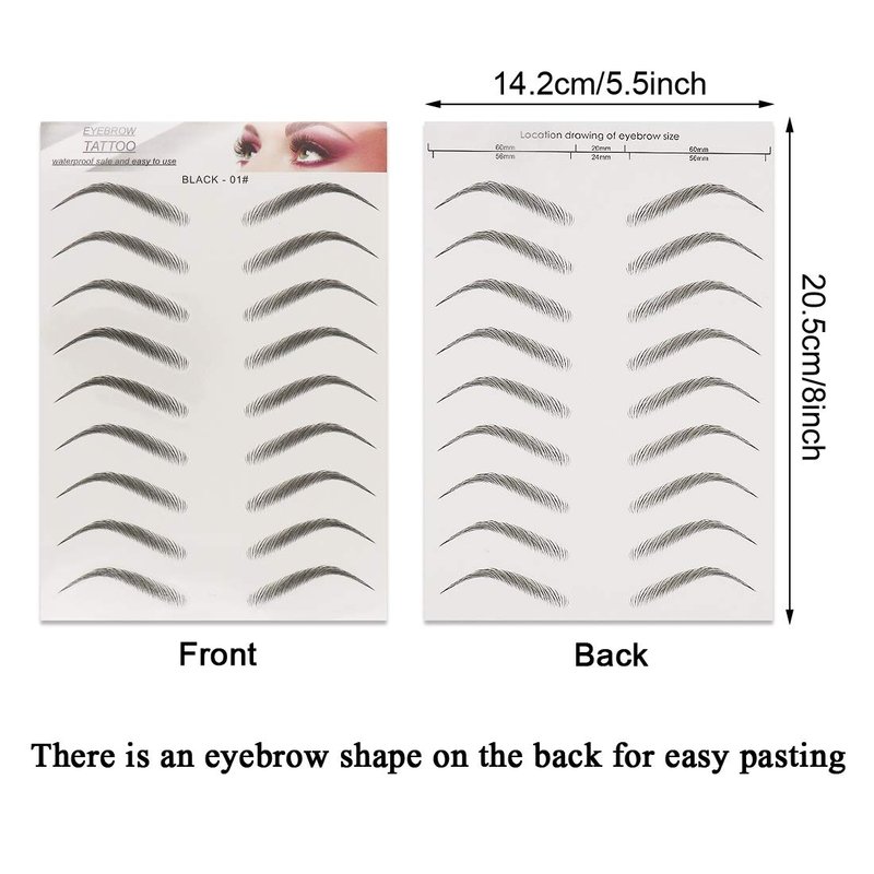 - Package includes:6 sheets(2sheets per style) realistic stick-on eyebrow stencil( 56 pairs brows)
