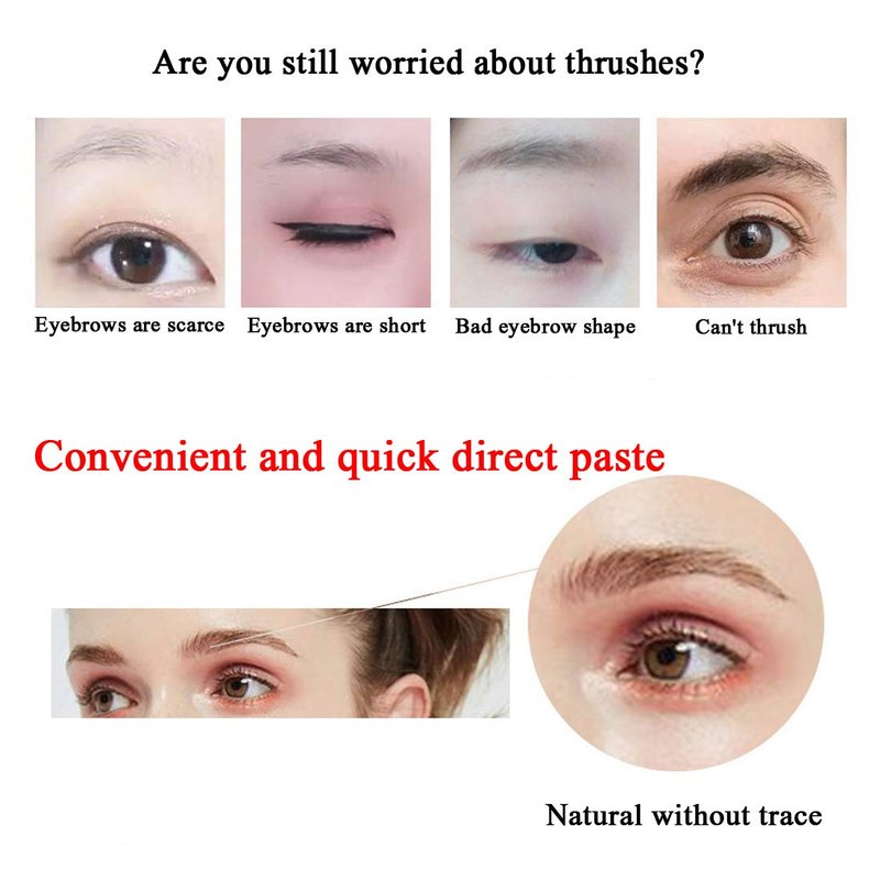 - Save time: Only a small amount of water to moisten the sticker, wait for seconds and tear it open to get natural eyebrows.There is no more need for daily application of eyebrow pencils or powders.