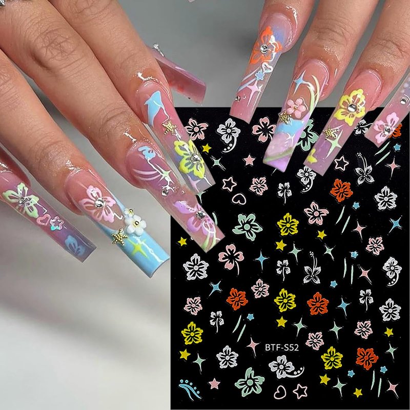 - Easy to Use: Flowers nail decals are self-adhesive, Just use tweezers to peel self-adhesive nail stickers and stick decals on your nail. You can also use nail gel to cover to make the beautiful stickers last longer.