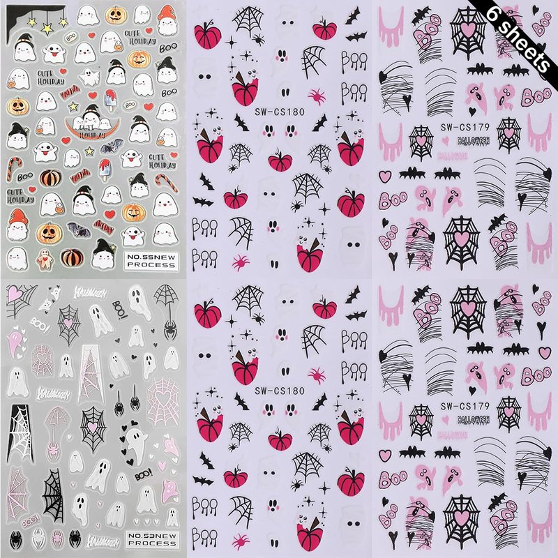 6 Sheets Halloween Nail Art Stickers Cute Ghost...