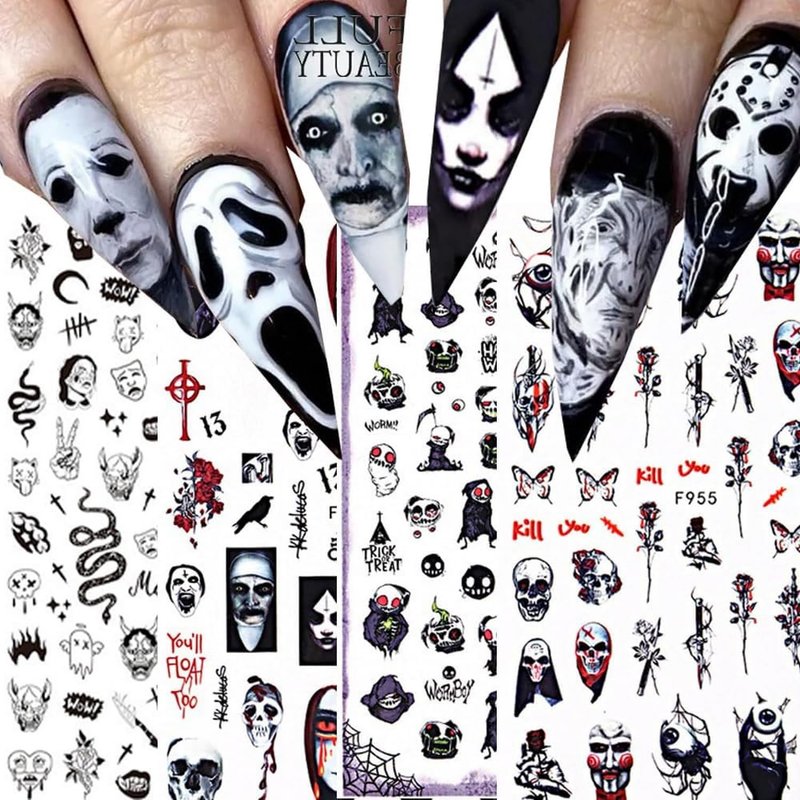 Halloween Nail Art Stickers Terror Nail Decals for Women Girls Manicure Tips