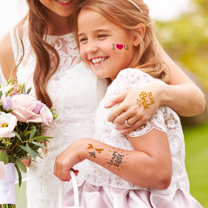 The gold metallic finish gives these tattoos a stunning look that’s perfect for weddings, hen parties, or even as a unique gift for the bride-to-be. Whether you're celebrating a bachelorette party or preparing for the big day, these wedding tattoos are the perfect accessory.