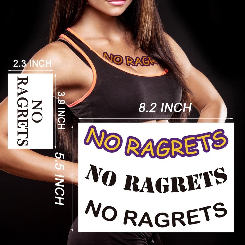 - FUNNY AND BOLD DESIGN::-- These No Ragrets temporary tattoos feature a humorous and bold phrase, perfect for adding some fun to any event or party. Ideal as phrase tattoos and funny tattoos for various occasions.