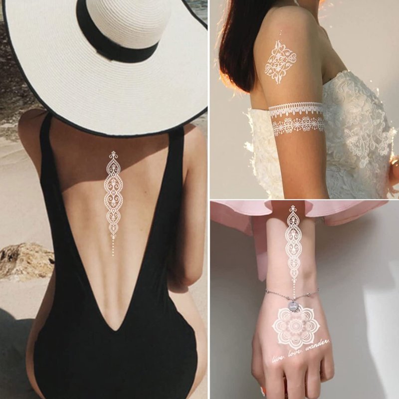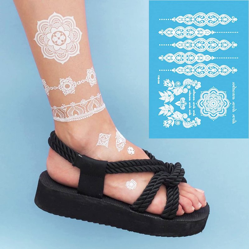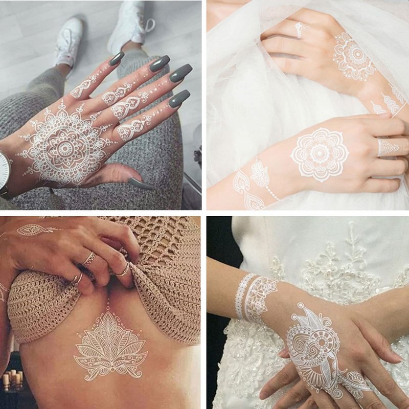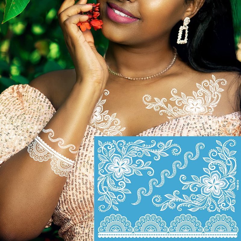- [Friendly Material] -- White Henna Temporary Tattoo is made of friendly and environmentally materials, skin-friendly, can be worn anywhere on your body.