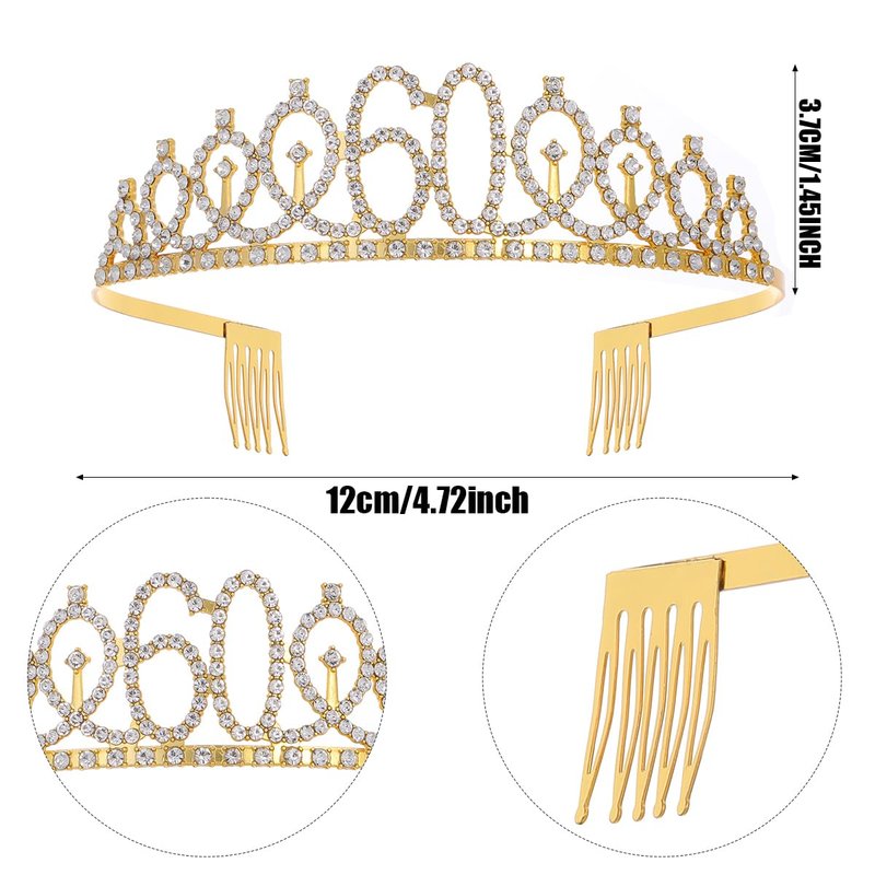 - 【60th Birthday Crown】Gold 60th birthday tiara is made of alloy metal,crystals and rhinestones, which is quality material and fine workmanship; As you know the corwn always give people a feeling of queen;yeah you are the queen on your birthday party;just enjoy it!!
