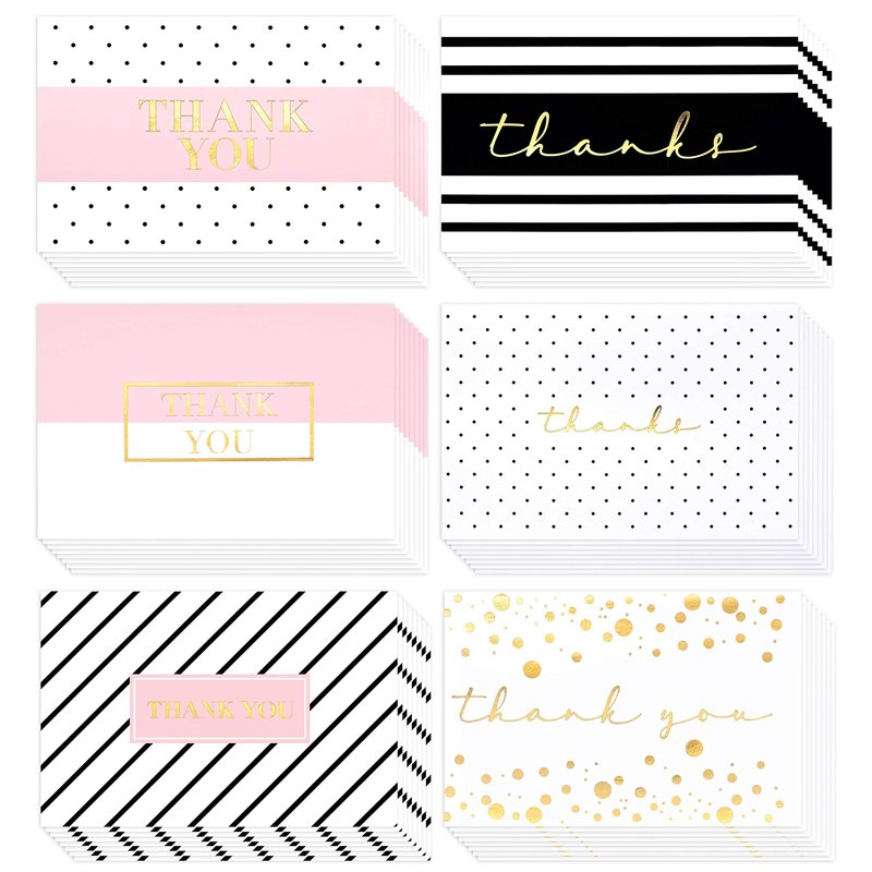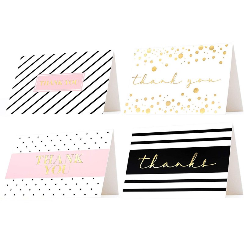 - BLANK THANK YOU CARDS - Simple and elegant one of a kind Gold Foiled thank you cards comes with blank on inside, plenty of room to write your thoughts and messages. Suitable for Wedding, Friendship, Teacher, Bridal, Business, Newborn, Anniversary, Baby Shower, Mother’s Day, Birthday, All occasions Thank You Card!