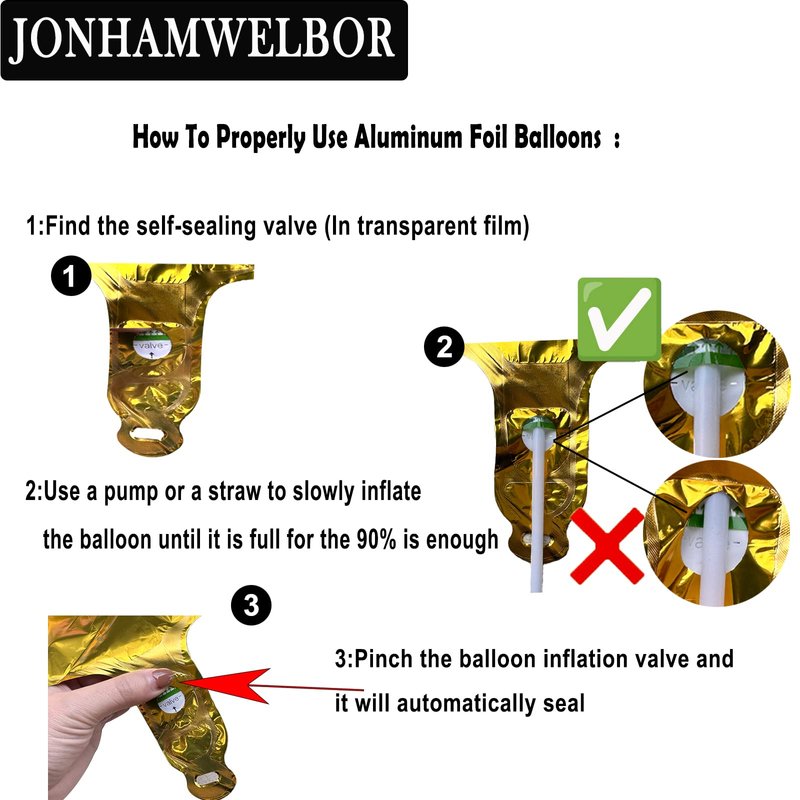 - TIPS FOR NUMBER BALLOONS: Due to the thermal expansion and contraction characteristics of aluminum foil,please avoid filling more than 90% of air or helium.If it is over-inflated,it can easily cause the balloon to explode at high temperatures.Please avoid leaving the balloons in an outdoor high temperature environment for a long time.If the ambient temperature is too low,it will also cause the balloon to deflate.At this point,you can use the straw to inflate again.