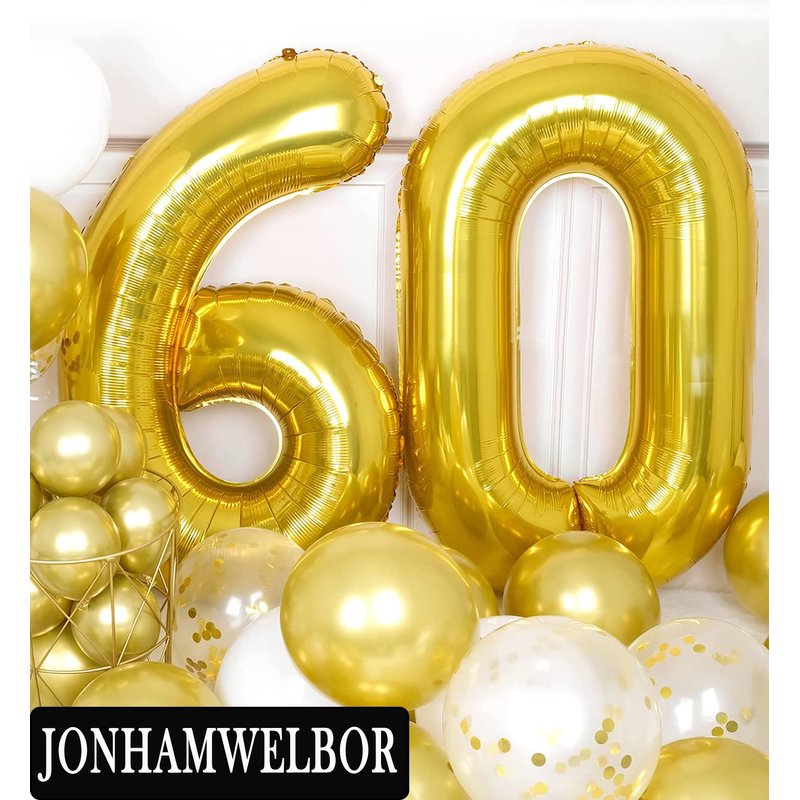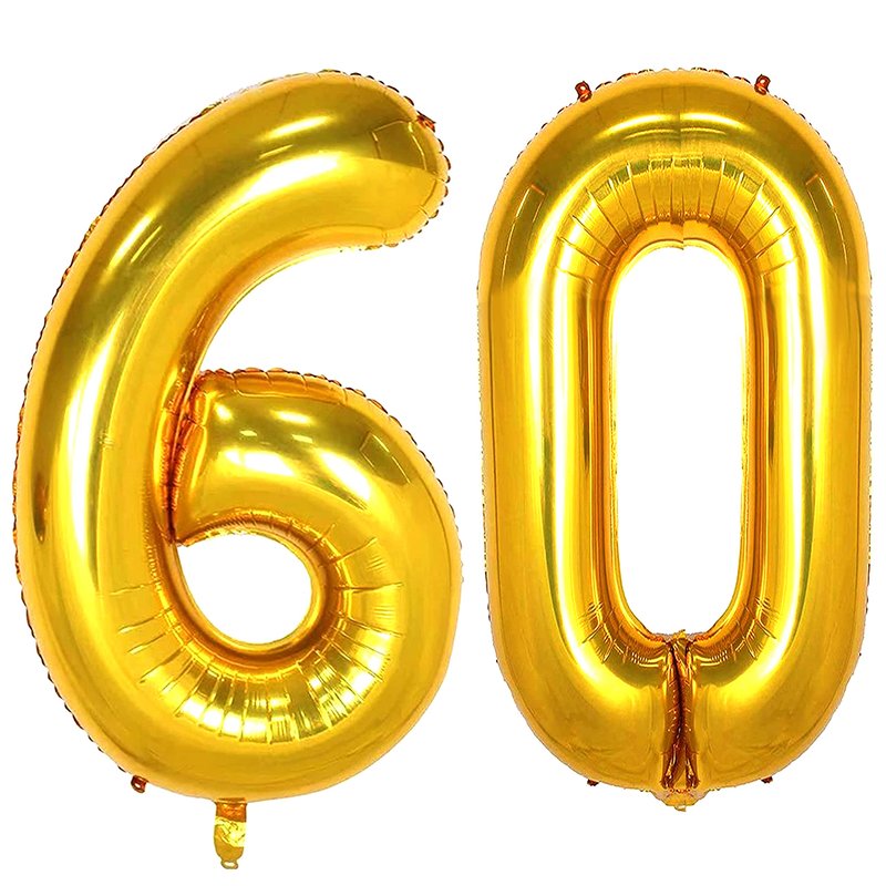 PERFECT SUITABLE FOR: The bright gold 60 number foil Mylar balloons are the best choice for:60th birthday party,wedding,graduation anniversary,holiday celebration,business,big events,school class party,Halloween,Christmas and New Year party decoration.You can stick the gold 60 number balloons on the wall,window or door,you can inflate with both helium or air,you can even place them on the bed, floor or table,provide your party or home a good display. PACKAGE CONTENTS: 2 Pieces 40 Inch gold number Balloons:No.6 gold number Balloon + No.0 gold number Balloon. CHOOSE THEM: The gold number balloon is made of high-quality aluminum film that empty balloon is 42 inch,after filled with helium or air,it's 40 inch.Please use the straw in the balloon set to inflate it slowly. TIPS FOR NUMBER BALLOONS: Due to the thermal expansion and contraction characteristics of aluminum foil,please avoid filling more than 90% of air or helium.If it is over-inflated,it can easily cause the balloon to explode at high temperatures.Please avoid leaving the balloons in an outdoor high temperature environment for a long time.If the ambient temperature is too low,it will also cause the balloon to deflate.At this point,you can use the straw in the suit to inflate again,and the balloon will be in perfect condition again. SERVICE: We do our best to provide customers with better products. If you have any questions, we promise to give you a satisfactory answer without any delay.