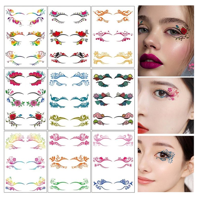 10 Sheets Eye Temporary Tattoos Face Eyeshadow Makeup Stickers Eyeliner Decals for Halloween Carnival Christmas Masquerade Party