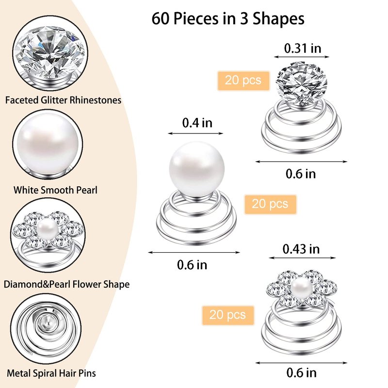 60 Pcs Large Rhinestone Spiral Hair Studs can make you more charming and define your unique beauty