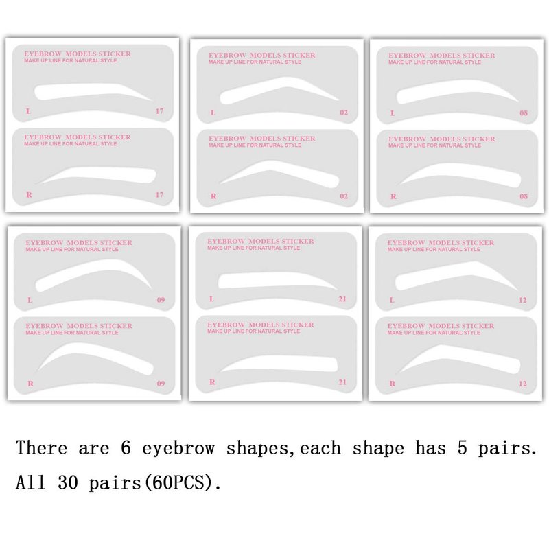 - The package includes 6 Styles available(5 pairs per eyebrow) ,30 pairs(60 PCS) eyebrow stencils.