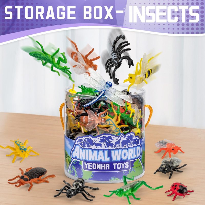 - Bug toy set: 60 pieces of lifelike small fake bugs, including 12 kinds of figurines: scorpions, cicadas, ladybugs, bees, crickets, mantises, etc. This is a wonderful gift for kids to explore insects and get out into nature